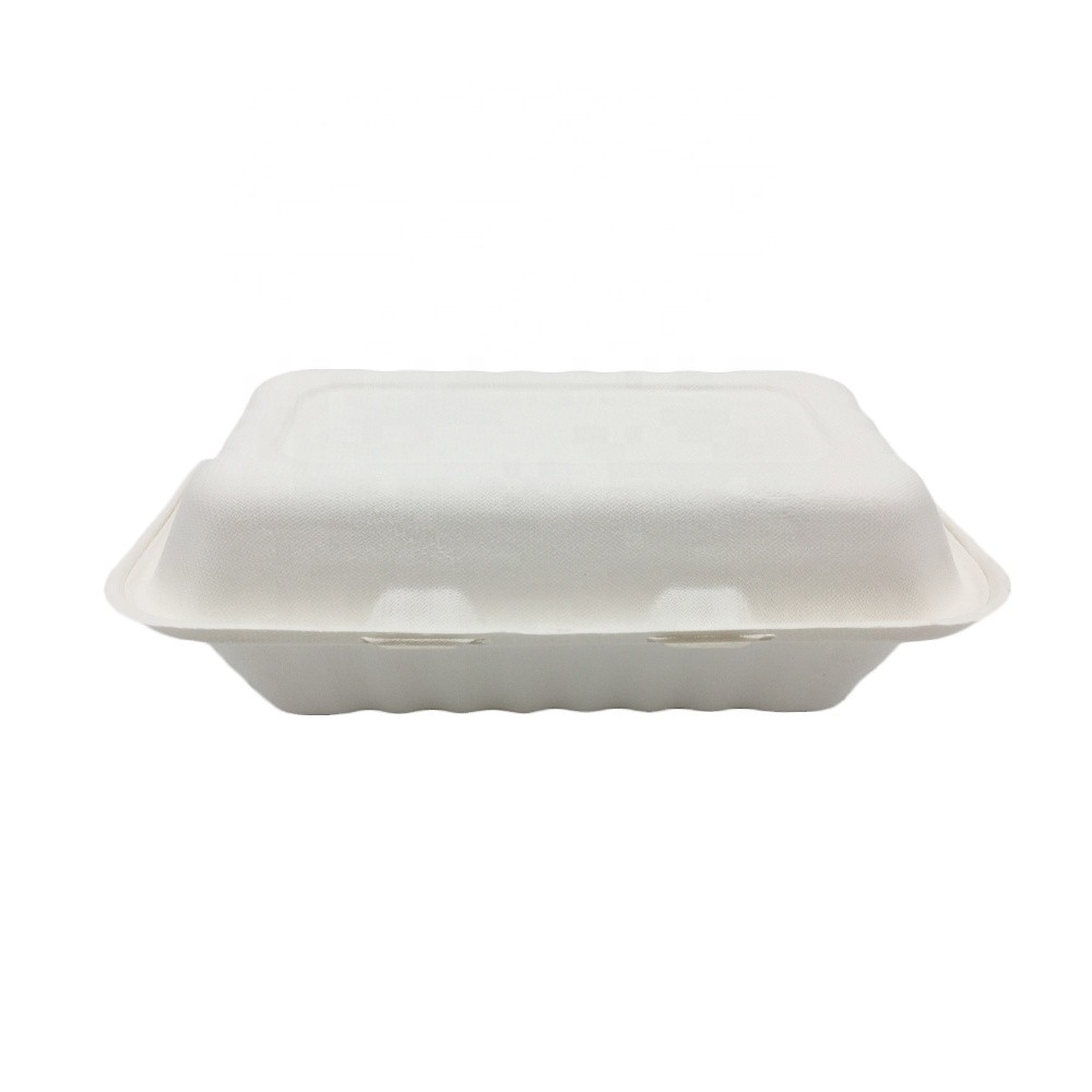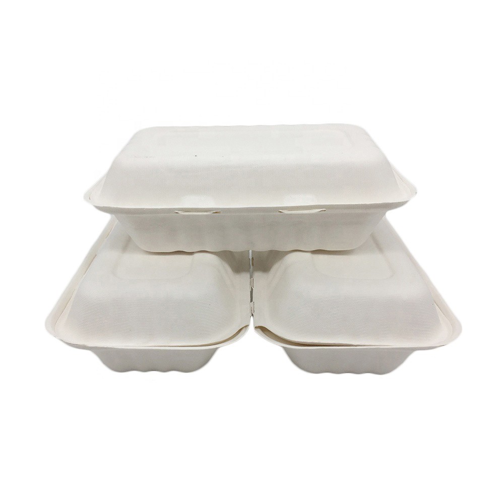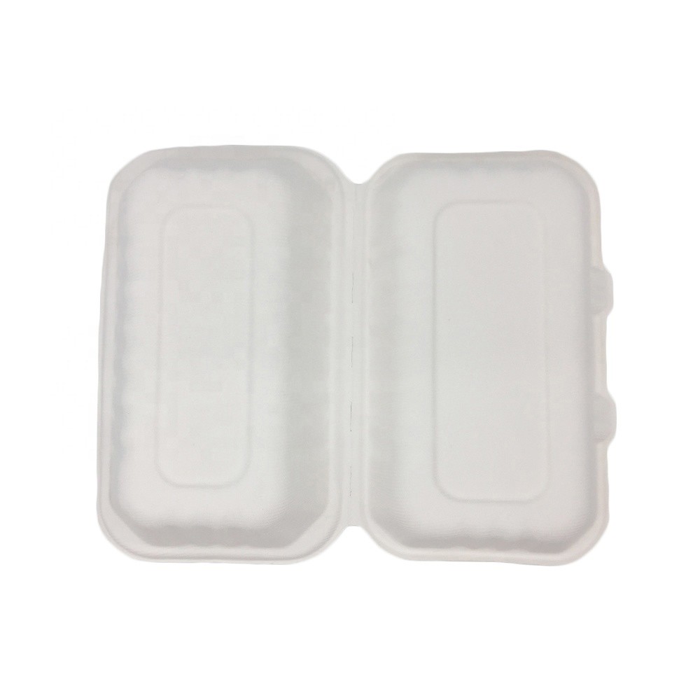 Disposable Food Container Rectangle Bagasse Clamshell Compostable Food Takeaway
