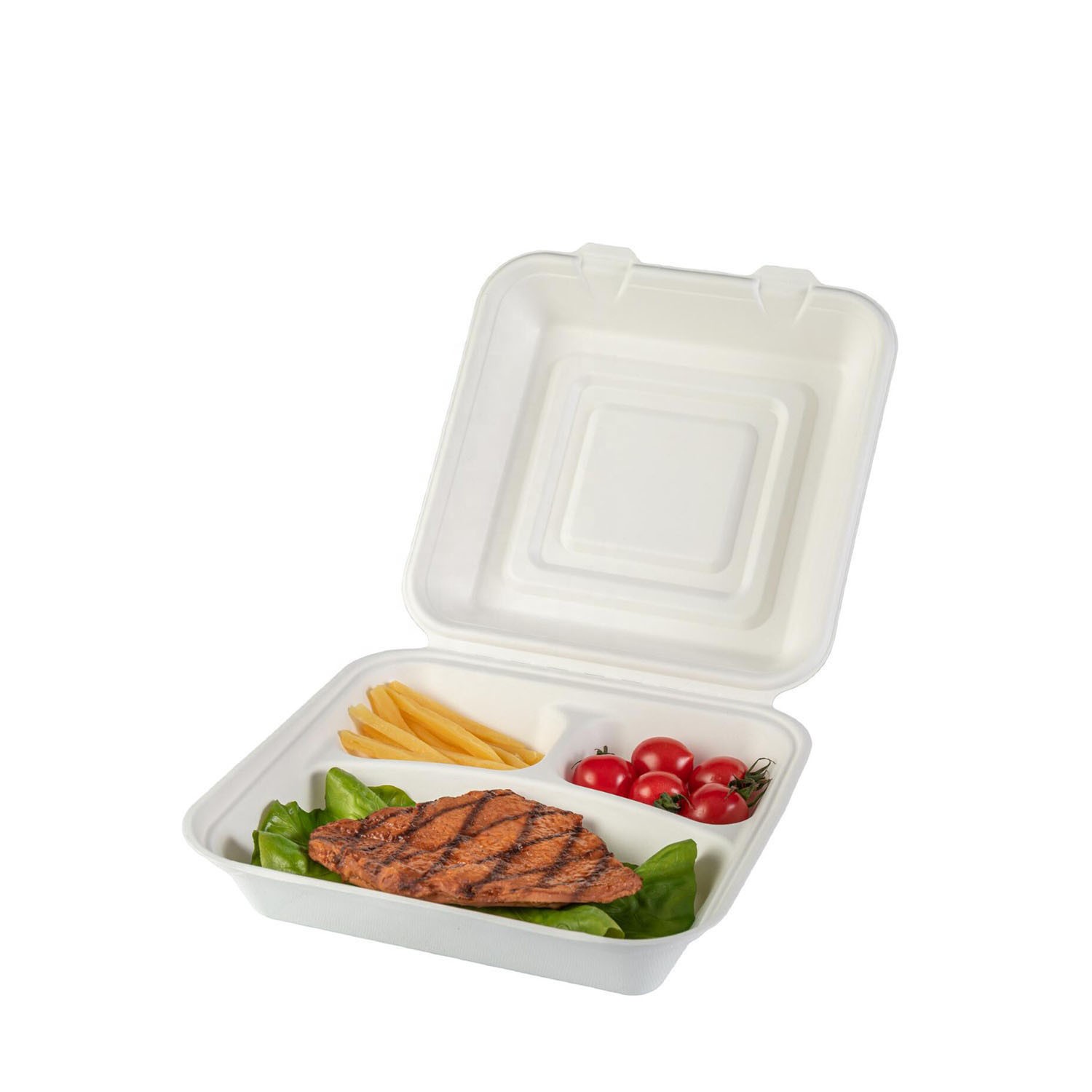 850ml Disposable Bagasse Bento Boxes With Bagasse Lid/PP Lid/PET Lid