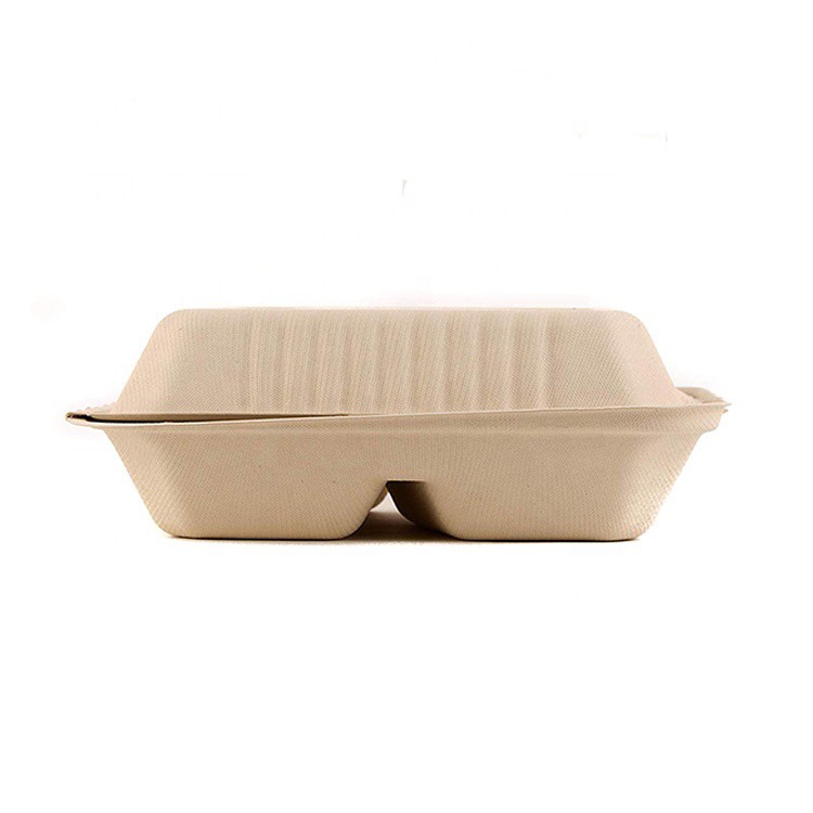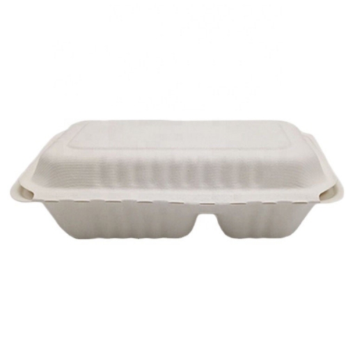Microwave 2 Compartment Takeaway Disposable Biodegradable Sugarcane Food Containers Lunch Box