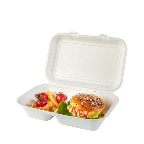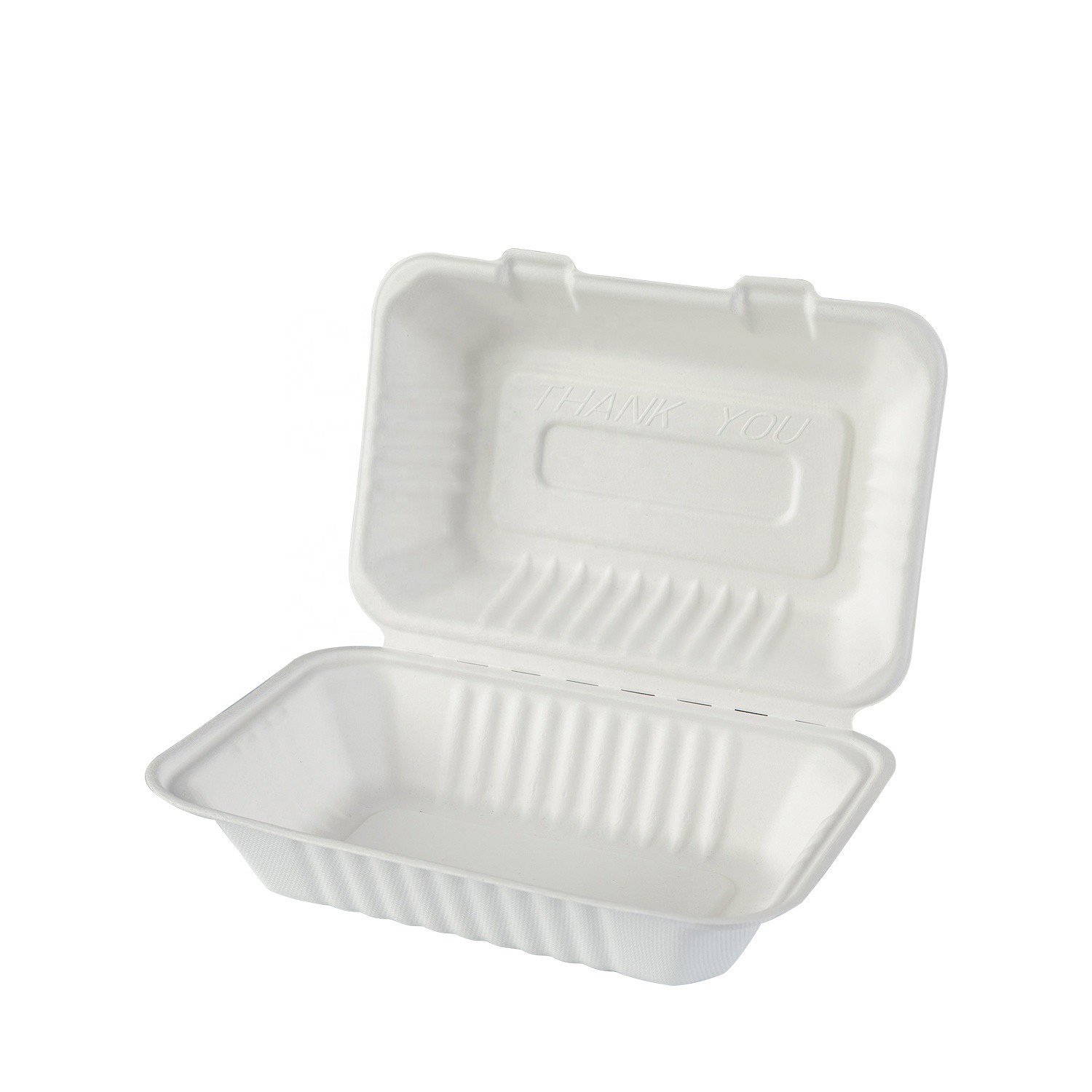 Rectangle Bagasse Clamshell Compostable Food Takeaway Disposable Food Container