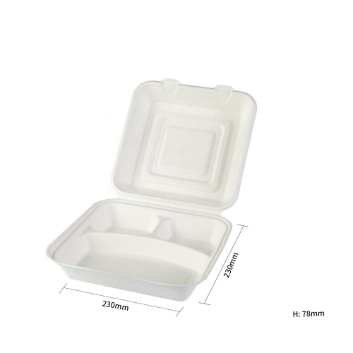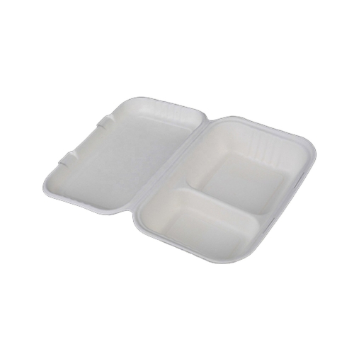 Two-compartment clamshell biodegradable sugarcane lunch box
